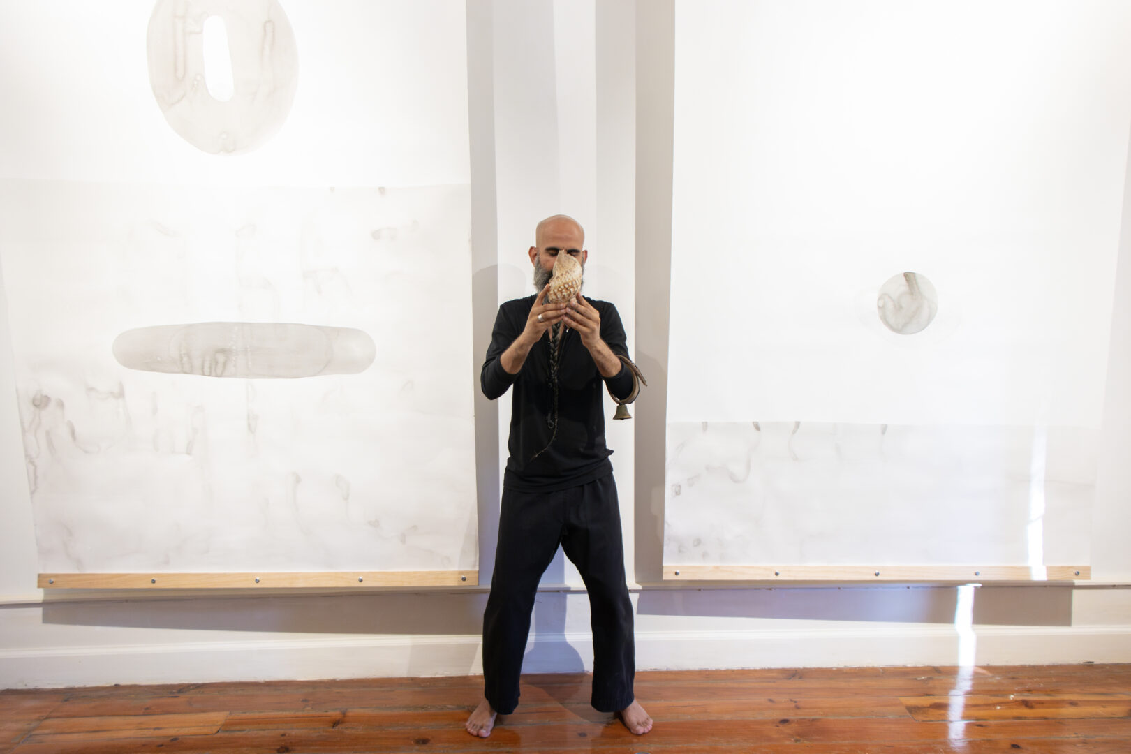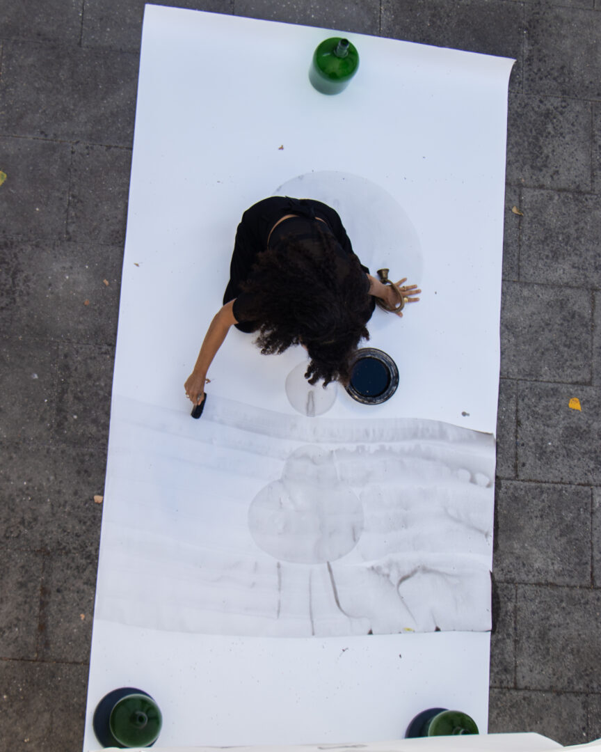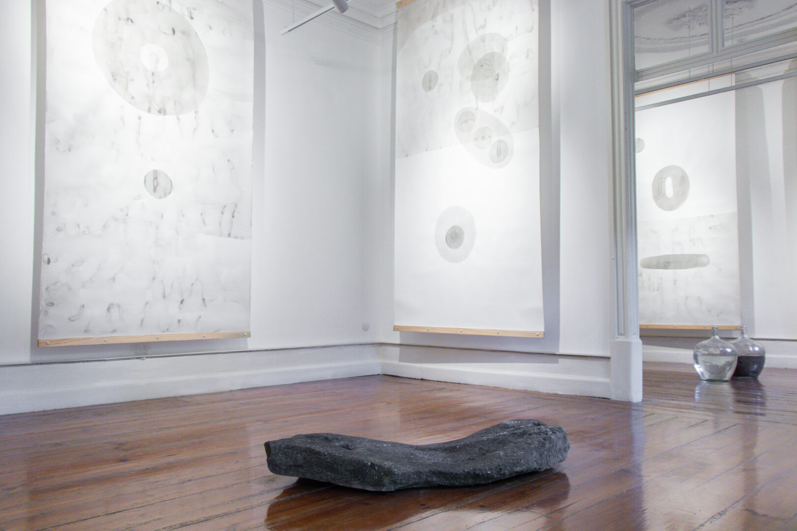 Dependurados, os papéis trazem luz para dentro do espaço e suspendem o tempo. Há que pausar o corpo e deixar que os trabalhos revelem a sua potência, o seu êxtase, diante de nós, os outros dela, a artista.”