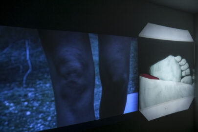 RE-INSCREVER-SE PELO CHÃO é uma criação que mergulha em estudos de casos de errância, encontros com comunidades, diálogos com especialistas e processos de experimentação em caminhada em diferentes territórios de Portugal, no campo e na cidade (Beira, Alentejo e Lisboa). A partir das experiências no processo de investigação sobre rotas de imigração, de trabalho e práticas de caminhada por investigadores, caminhantes e artistas, encontra rotas riscadas, arriscadas e renegadas. “O que o meu pé me conta?”, orienta a tecitura de uma malha de rotas r(ô)tas, reescrevendo o chão que pisa, através de práticas errantes, desenhos, escritas e sons. Esta pesquisa resultou num objeto híbrido, uma publicação-audiobook, uma instalação interativa e uma performance de ativação.